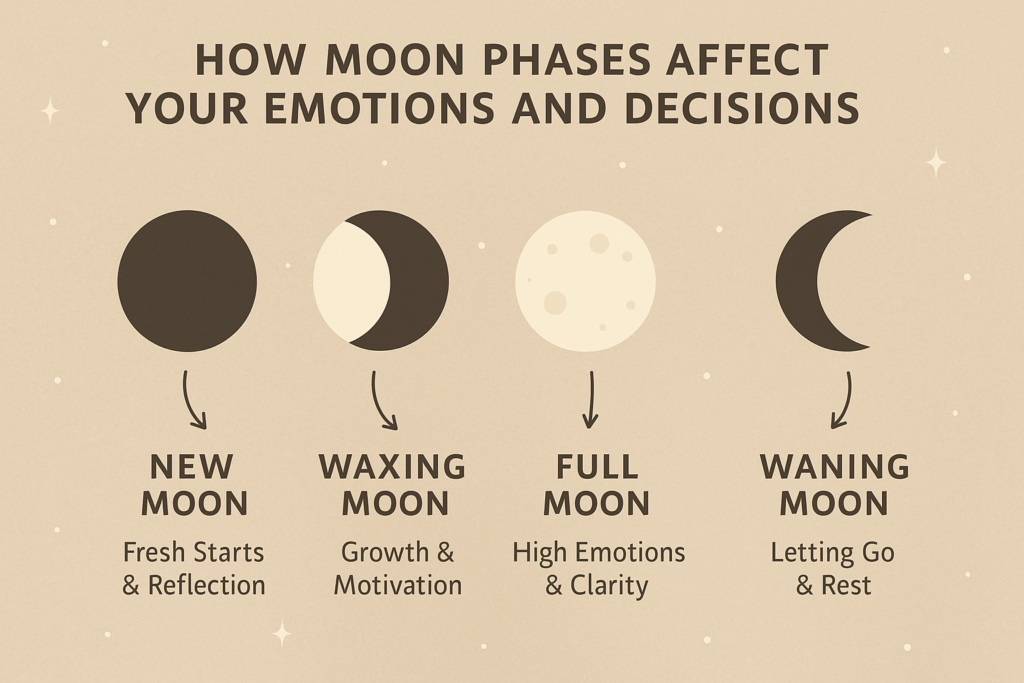 The moon influences more than just the tidesโ€”it also impacts our emotions, energy levels, and decision-making. Each phase carries unique energy that can shape our mood and actions.